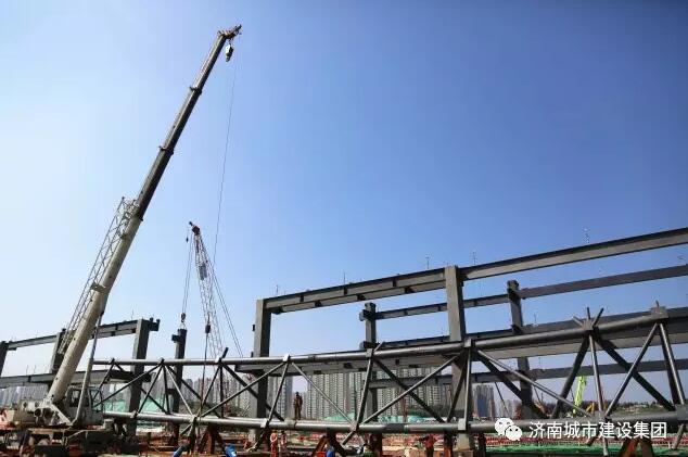 9月8日上午,濟(jì)南西部會展中心項(xiàng)目的第一榀(pǐn,屋架量詞)屋面鋼結(jié)構(gòu)桁架吊裝完成,五號展館的鋼結(jié)構(gòu)主體雛形初現(xiàn),濟(jì)南西部會展中心的建設(shè)步伐又推進(jìn)了扎實(shí)一步。