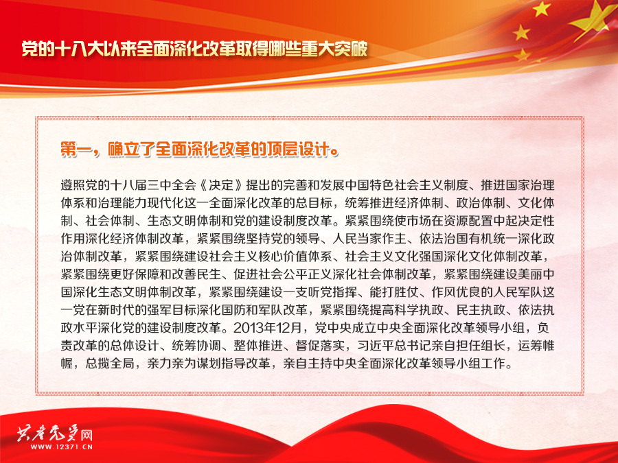 【十九大微課堂】第二十三講:黨的十八大以來全面深化改革取得哪些重大突破?