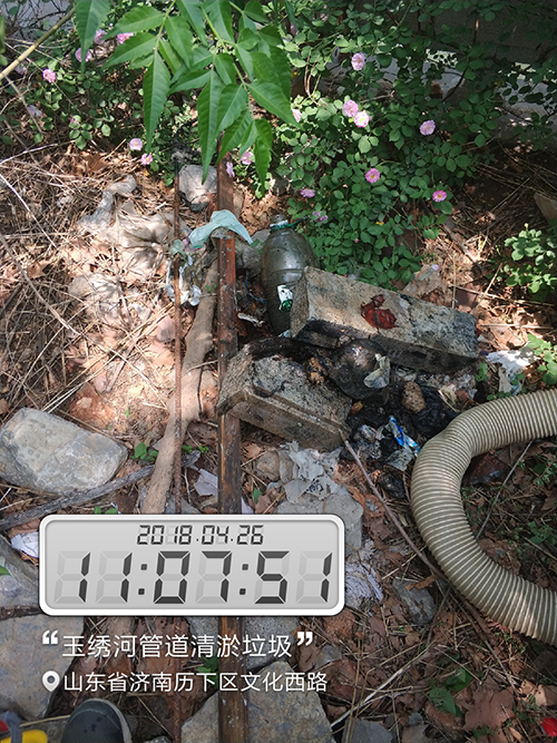 2018年4月24日濟南市政公用資產管理運營有限公司接到濟南市排水管理服務中心通知,在玉繡河下游發現一處檢查井冒溢,污水冒溢至玉繡河內直接造成河道污染,接到通知后,公司立即安排應急搶險小組前往現場,經過現場排查該管段位于玉繡河河床內,不屬于我公司管轄范圍,按照市城鄉水務局“2018清網行動”精神指示,本著有險情先搶險的原則,公司對該冒溢點立即進行搶修,保證管網正常運行。
