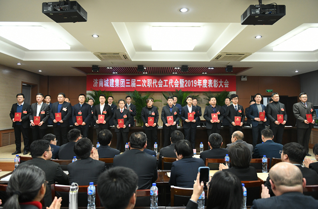 1月16日,城建集團三屆二次職代會工代會暨2019年度總結表彰大會在四樓多功能廳順利召開。城建集團黨委書記、董事長湯繼沂,黨委副書記、總經理牟曉巖等領導班子成員、職工代表、受表彰先進單位和先進個人代表等共223人參加會議。