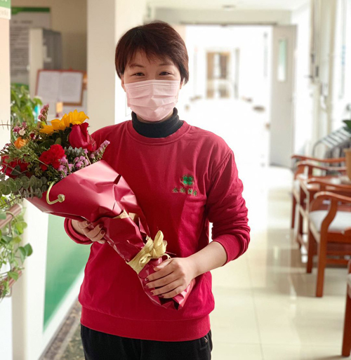 許娟,金齡健康產業投資(山東)有限公司運營部經理,負責照料園區老人的日常生活。直到有人將鮮花送到,她才意識到當天是國際婦女節。自春節以來,許娟與丈夫因為都在一線單位工作幾乎沒有碰面,兩個年幼的女兒只能托付給公婆照看,她把家人的付出與支持化作對工作的熱忱,將這份愛傳遞給身邊的每一個人。
