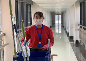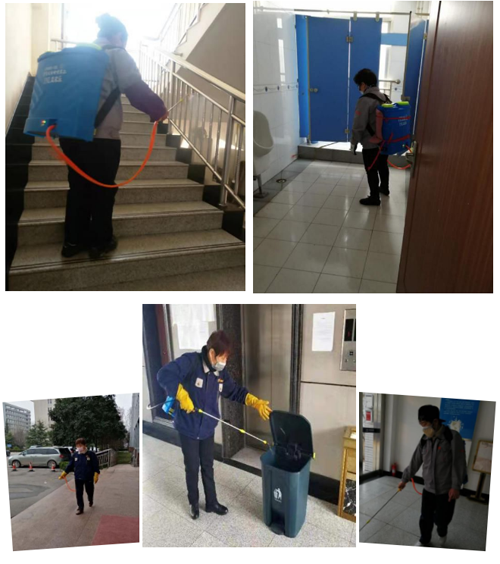 保潔員于秀菊,自春節以來,每天堅持對辦公區域消毒至少3遍,每天都是等到全部人員離開后,于秀菊對各區域進行最后一次消毒最后一個離開公司。
