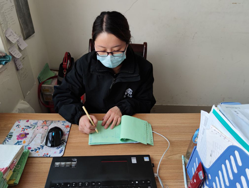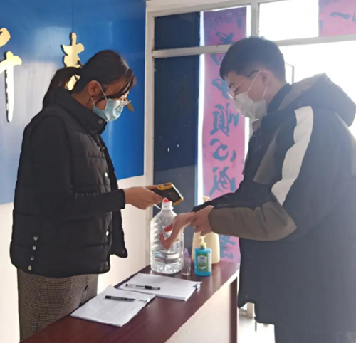 王娟每天負責出入人員的體溫測量和出入登記,看似重復又簡單的工作,王娟同志卻十分認真負責,絲毫不敢懈怠。
