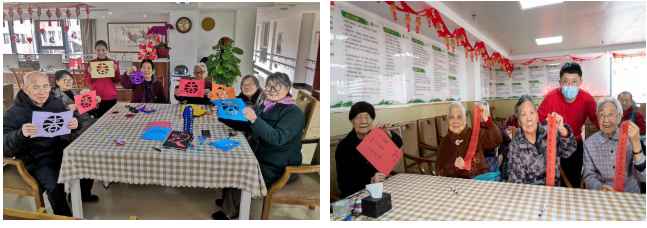 節(jié)日期間,金齡健康的員工們以堅守崗位,以長者的需求為重,每一天都安排了豐富多彩的娛樂活動。有泥塑、剪紙、寫春聯(lián)等手工活動;也有擊鼓傳花、套圈、紅歌KTV等參與性活動。公司也對在崗員工表達了關(guān)心和祝福,準備了零食福袋和橘子等慰問品,希望他們在照顧好入住長者的同時也能照顧好自己,讓歡聲笑語包圍充滿園區(qū),共同度過一個熱鬧祥和的新年。