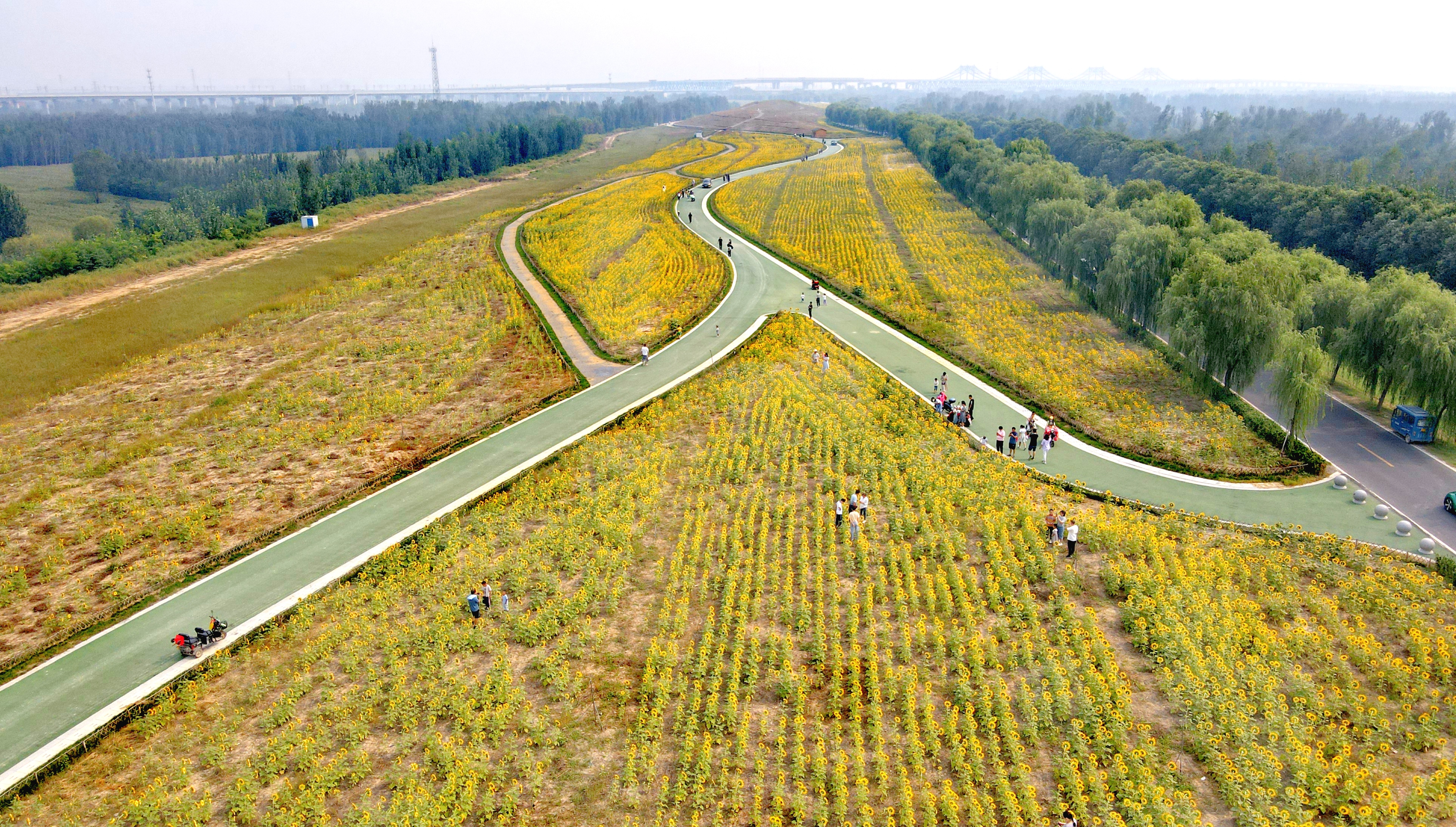 270多畝向日葵競相開放,起步區黃河生態景觀風貌帶花海扮靚母親河畔