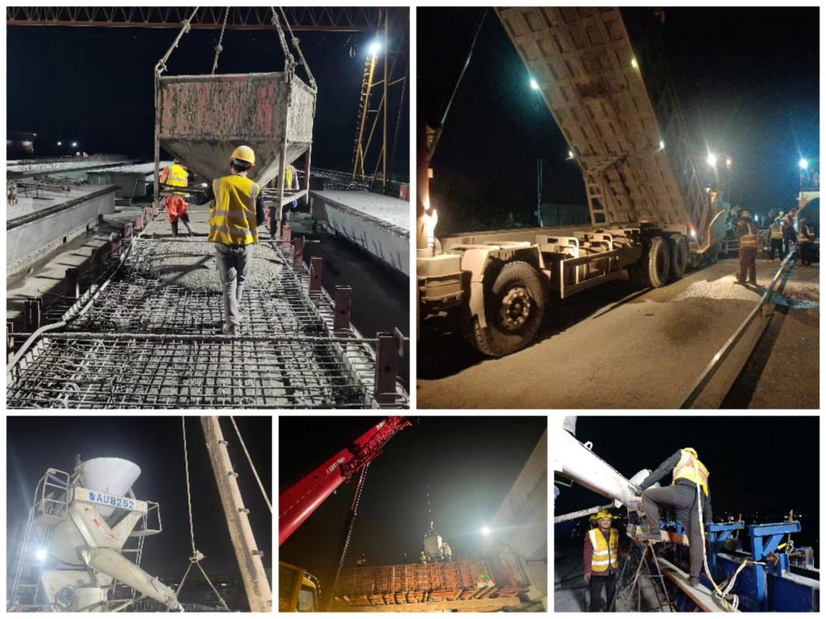 第三階段交通導改路段全長490米,共計18跨,由105片箱梁、66棵樁基、56根墩柱組成,總面積約7000平方米。項目部前后場緊密配合,優化施工順序,強化工序銜接,共計調配攤鋪機3臺、雙鋼輪壓路機4臺、運輸車20余輛,連續施工24小時順利完成導改路段路面攤鋪,提前一周完成施工。左幅的貫通為橋梁右幅施工提供了作業面,仲宮大橋互通區施工進入沖刺階段。