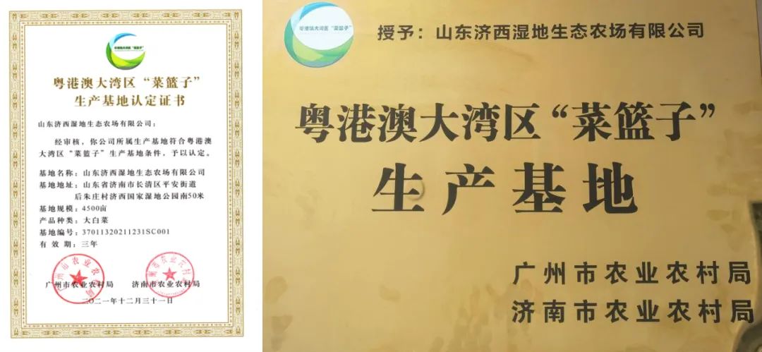 近日,山東濟(jì)西濕地生態(tài)農(nóng)場有限公司通過粵港澳大灣區(qū)“菜籃子”生產(chǎn)基地認(rèn)定,并被授予認(rèn)定證書和基地牌匾,標(biāo)志著濟(jì)西農(nóng)業(yè)高質(zhì)量的特色農(nóng)產(chǎn)品獲得“通行證”進(jìn)入粵港澳大灣區(qū)的“交易大廳”,為公司農(nóng)產(chǎn)品開拓粵港澳市場奠定了基礎(chǔ)。
