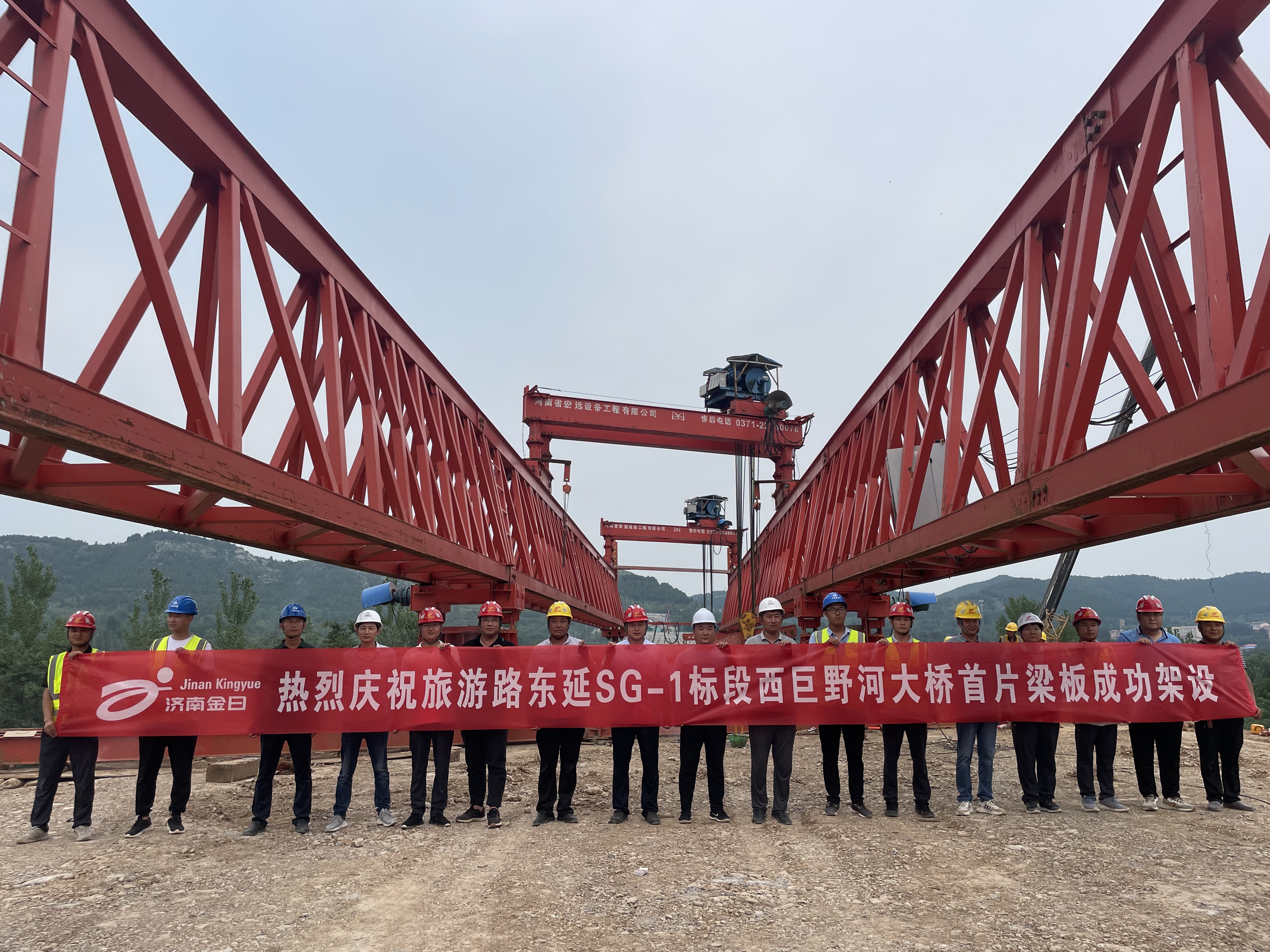 金曰公司承建的旅游路東延項目西巨野河大橋首片箱梁架設完成