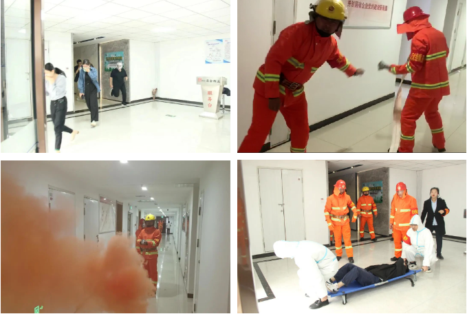 在消防演練階段,指揮部按照應急預案,迅速行動,組織調度應急搶險組、安全保衛組、人員疏散組、醫療救護組分頭行動,完成人員撤離、現場滅火、傷員救治等系列工作。各小組組配合行動井然有序,迅速完成各項模擬任務,達到預期成效。