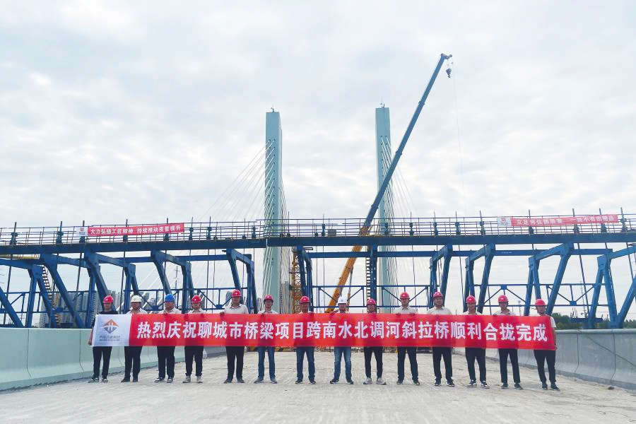 省重大項目建設再獲突破,城建集團公司承建的聊城西關街高架橋工程斜拉橋主跨合龍