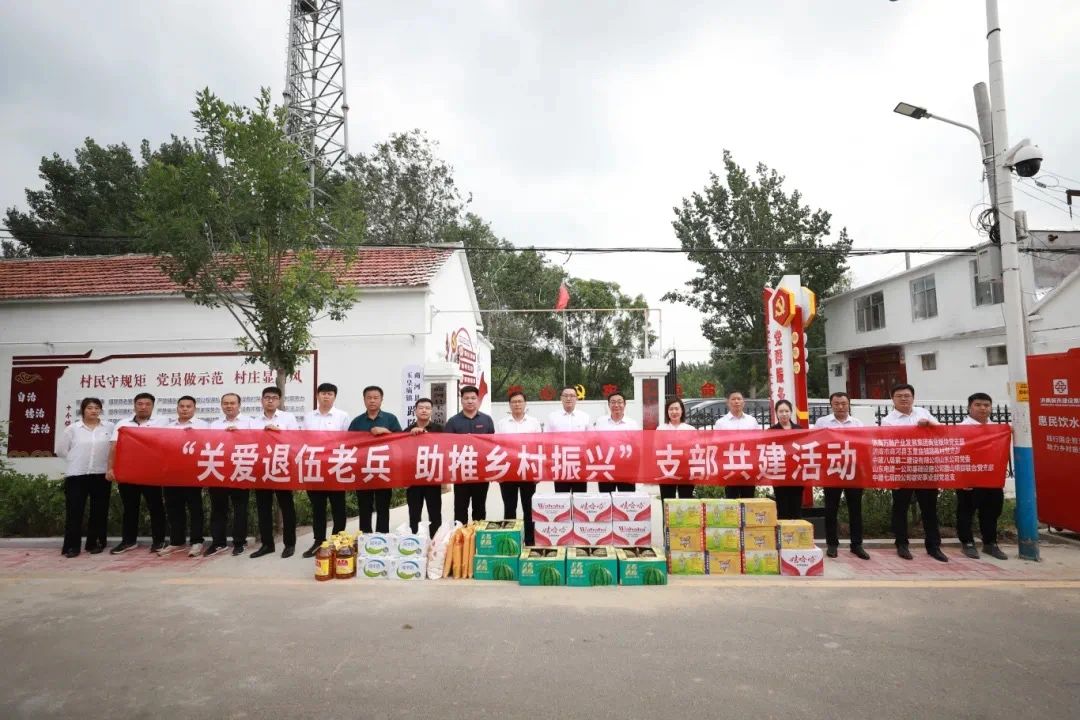 濟南萬融產業發展集團商業板塊黨支部聯合多家單位,在濟南市商河縣玉皇廟鎮路陳村開展“關愛退伍老兵 助推鄉村振興”支部共建活動,走訪慰問村退伍軍人家庭。各支部黨員代表進行了支部共建簽約儀式,并共同為路陳村農村書屋捐贈圖書、夏涼慰問品。