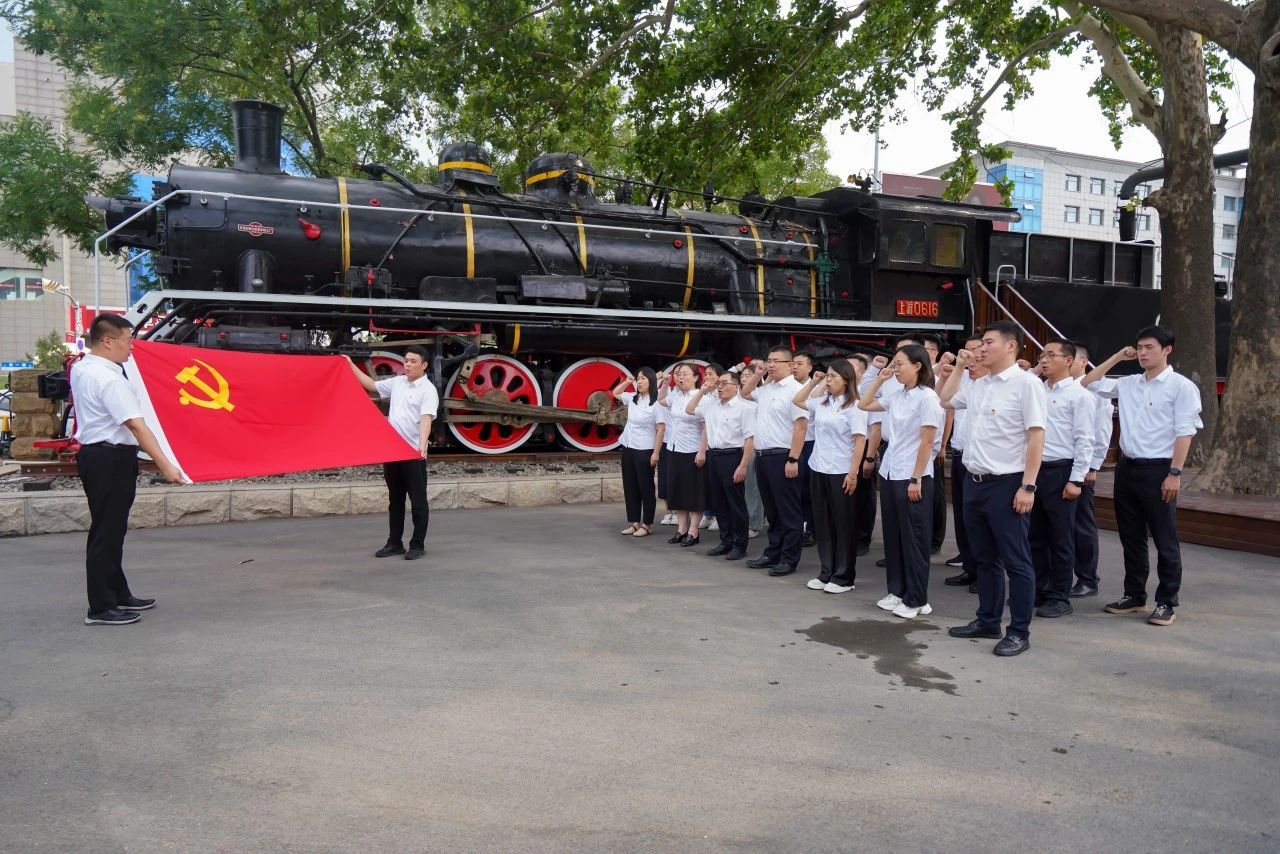 展館內(nèi),在工作人員的帶領(lǐng)和講解下,黨員們先后參觀了“膠濟鐵路的修建背景及過程”“對山東社會經(jīng)濟發(fā)展的影響”“風(fēng)雨滄桑路”“邁向新時代”等四個主題展區(qū),多維度了解膠濟鐵路的歷史背景、滄桑變遷、紅色故事等,回顧膠濟鐵路建設(shè)發(fā)展的百年歷程,學(xué)習(xí)老一輩“鐵軍”開創(chuàng)、探索、鉆研和拼搏奉獻精神,感受如今鐵路建設(shè)取得的輝煌成就。參觀結(jié)束后,全體黨員來到博物館院內(nèi),重溫入黨誓詞,表達了對黨的忠誠和為人民服務(wù)的堅定決心。
