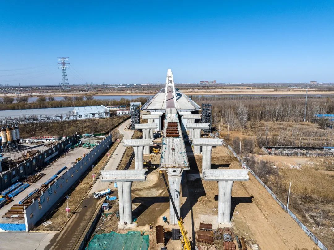 濟南黃河齊魯大橋位于濟南市槐蔭區(qū)、天橋區(qū),路線南起齊魯大道與濟齊路交叉口,接現(xiàn)狀齊魯大道,依次跨越美里路、北太平河北路、濟廣高速,經(jīng)過鄭家店村東,跨越黃河后,終點位于G309交叉處。項目全長6742米,按照雙向八車道一級公路標準建設(shè),兼顧城市主干路功能,設(shè)計速度60公里/小時,主橋范圍為公軌合建的橋梁形式,中間預(yù)留城市軌道交通空間。主橋采用網(wǎng)狀吊桿系桿拱橋,主跨420米,工程建成后將成為同類橋型跨徑世界第一。