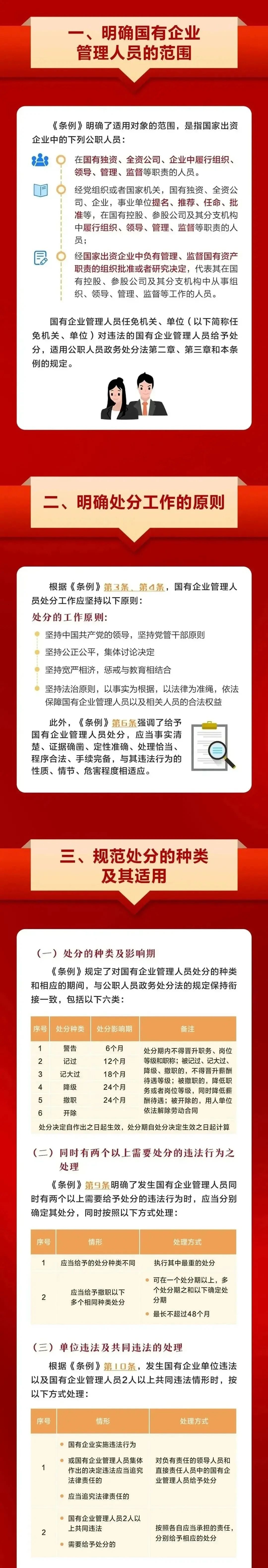 2024年4月26日,國務院第31次常務會議通過《國有企業(yè)管理人員處分條例》(以下簡稱《條例》),自2024年9月1日起施行。《條例》共7章52條,包括總則、處分的種類和適用、違法行為及其適用的處分、處分的程序、復核與申訴、法律責任、附則等。